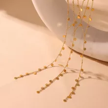 Crafted from high-quality stainless steel and finished with PVD real gold plating, this necklace offers long-lasting beauty with a smooth, radiant shine. The metal resists tarnishing and fading, helping it maintain its rich color even with regular wear. The round pendant sits gracefully on the chest, while the long link chain creates an elegant vertical line that flatters every neckline.