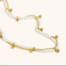 Elevate your everyday style with this stunning round imitation pearl double-chain necklace. Designed to bring a touch of sophistication to any look, it blends modern fashion with timeless charm. Crafted from durable 316L stainless steel and finished with luxurious 18K gold plating, it offers a radiant shine that lasts. The piece is lightweight at just 0.5 oz and features a comfortable 16 in + 2 in adjustable fit, making it perfect for layering or wearing alone.