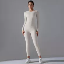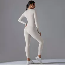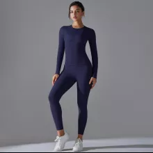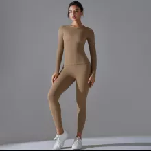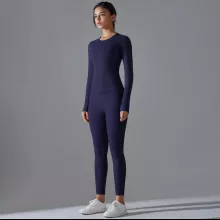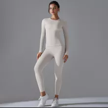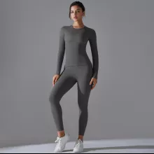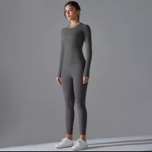 Made from a premium blend of nylon and elastane, this set feels soft on the skin while offering excellent stretch and recovery. The fabric is breathable and quick-drying, helping you stay cool and dry even during intense workouts. The long-sleeve top provides comfortable coverage, while the high-stretch leggings move with you without feeling tight or restrictive.