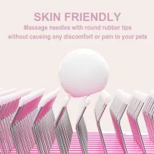 Made with durable ABS and high-quality stainless steel, this grooming tool features softly rounded needle tips that glide smoothly through fur without scratching or irritating the skin. The curved needle design reaches deep into the coat to loosen knots and remove trapped hair, while still feeling comfortable and soothing. It’s ideal for regular grooming sessions at home, especially during shedding seasons or after playtime outdoors.