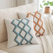 Refresh your living room, bedroom, or patio with this set of 2 boho geometric throw pillow covers. Designed in a modern square shape measuring 18 x 18 inches, these covers instantly add warmth, character, and charm to any corner of your home. Whether you’re updating your sofa, couch, or bed, their embroidered geometric design creates a chic yet cozy atmosphere you’ll love coming home to.