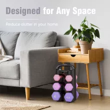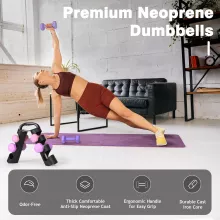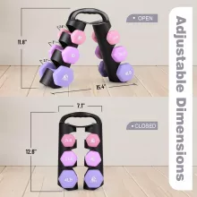 Elevate your home workouts with this Set of 2 Neoprene Coated Dumbbell Hand Weights—a sleek and functional addition to your fitness routine. Designed for both beginners and seasoned fitness lovers, this set includes pairs of 2 lb, 3 lb, and 4 lb dumbbells in a charming lilac color that adds a touch of elegance to your training space. The included multifunctional rack keeps everything neatly organized while enhancing your exercise experience.