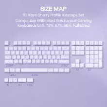 Crafted for efficiency and comfort, these Cherry-profile keycaps support a natural wrist angle and more intuitive fingertip reach across all rows. The ergonomic height progression makes accessing higher rows effortless while keeping your typing posture relaxed. The set includes 113 keys, offering wide compatibility with 65%, 75%, 96%, and full-size keyboards using MX-style switches.