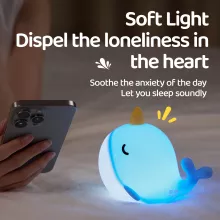 Turn bedtime into a calming, happy moment with this adorable silicone whale night light. Designed to soothe both kids and adults, this soft-glow lamp adds warmth and charm to any bedroom or nursery. Its friendly whale shape and smooth, squishy silicone body make it instantly lovable, while the gentle LED light creates a peaceful atmosphere that helps little ones drift off to sleep with ease.