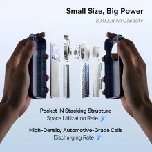 What makes this power bank special is the balance between power and portability. The compact body fits easily into your pocket or bag, yet it packs enough capacity to keep you going all day. A triple cooling system helps manage heat during charging, protecting battery health and ensuring safer performance. The smooth retractable cable is durable, flexible, and built to last.