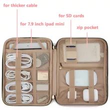 This organizer features multiple compartments that securely hold your tablet, phone, cables, chargers, USB devices, and small electronics in one compact case. The durable polyester material helps protect your accessories from scratches, dust, and accidental drops while maintaining a lightweight feel. The interior layout keeps everything separated and easy to see, so you can find what you need in seconds without unnecessary searching.