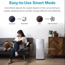 - Clarity and Confidence: The Auto Mode with a Laser Dust Sensor adjusts fan speed in real-time, while the display provides real-time PM2.5 value for enhanced monitoring.