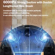 - Powerful 6000PA suction for deep cleaning on all surfaces.