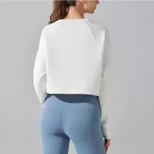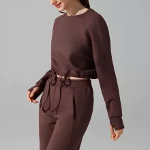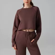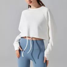 This sweatshirt features a classic crewneck for a clean, timeless look, while thumbholes keep your sleeves perfectly in place as you move. Its adjustable drawstring hem allows you to wear it two ways — relaxed and straight for a casual fit, or cinched up for a trendy cropped silhouette that highlights your waistline. The waist-length cut pairs perfectly with your favorite high-rise leggings, joggers, or denim for a balanced, flattering outfit that moves with you.