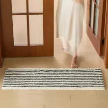 Made from 100% polyester with a durable TPR non-slip backing, this rug stays securely in place while remaining soft and flexible. The woven construction ensures long-lasting shape and texture, even with regular use. Measuring approximately 16 x 47 inches, it’s the perfect size for bedside placement, in front of a vanity, along a hallway, or beside the bathtub.