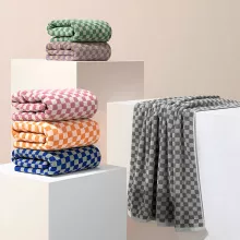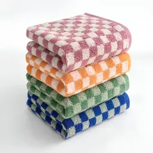 Available as a single hand towel measuring 13.3 x 29 inches or as a two-piece set that includes both the hand towel and a generously sized bath towel measuring 27.5 x 55 inches, it offers the perfect match for any bathroom style or personal routine. The classic plaid pattern adds a clean, modern touch while the knitted jacquard design enhances softness and long-lasting quality.