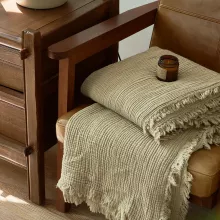The four-layer cotton yarn construction gives this blanket a plush feel without heaviness. It resists pilling, holds color well, and stays soft wash after wash. The minimalist solid color design inspired by Japanese style makes it easy to pair with modern, cozy, or natural interiors. From its breathable fabric to its decorative tassels, every detail is made to balance beauty and comfort.