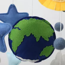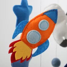 Transform your little one’s nursery into a magical universe with this charming space baby boy mobile. Featuring a delightful astronaut, rocket, clouds, stars, planets, the sun, and moon, this mobile brings the beauty of the cosmos right above your baby’s crib. Its celestial design sparks imagination and curiosity, encouraging a love for space exploration from an early age. The soft, handcrafted felt pieces gently sway, captivating your baby’s attention and creating a soothing, enchanting environment perfect for nap time or bedtime.