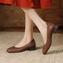 Every detail of these pumps has been thoughtfully crafted to meet your everyday needs. The genuine leather upper ensures a luxurious look and long-lasting wear, while the square toe gives them a contemporary edge. The chunky heel provides stability, making them suitable for all-day use without straining your feet. These shoes feature a sticking upper fixing method, ensuring a secure fit, and their coverage stops below the ankle for a sleek silhouette.