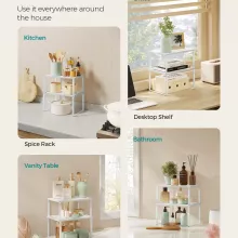 These shelves don’t just belong in the kitchen—they shine anywhere you need stylish organization. Elevate table centerpieces in the dining room, tidy your desk in the bedroom, or keep bathroom essentials neatly arranged. You can even turn one into a raised feeding station for small pets.