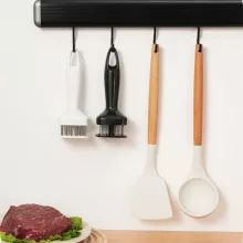 This meat tenderizer isn’t just effective—it’s also built with your comfort in mind. The ergonomic handle fits naturally in your hand, reducing fatigue during use. Its non-slip grip ensures safety and control, even when your hands are wet or oily. Press lightly, and the tool does the rest—no splashing, no noise, just clean and quiet performance. Plus, the spring-loaded mechanism retracts the blades automatically, keeping your prep space clean and tidy.