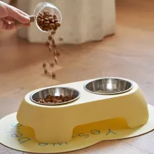 With its integrated dual-bowl system, you can serve food and water at once—saving time and keeping mealtime tidy. Each bowl offers plenty of space for dry kibble, wet food, or water, making it perfect for everyday feeding. The smooth stainless-steel surface resists odors and stains while ensuring your pet’s safety and health.