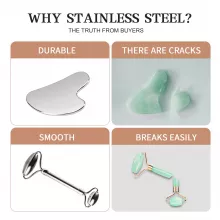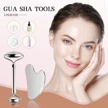 Bring spa-quality self-care into your daily routine with this 304 stainless steel facial roller and gua sha set. Crafted with precision and durability, this sleek beauty tool duo is designed to relieve facial tension, promote lymphatic drainage, and leave your skin looking refreshed and radiant. Unlike jade or quartz rollers, stainless steel stays naturally cool to the touch, enhancing the soothing experience and reducing puffiness instantly.