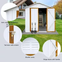 Introducing our resilient and spacious 6×4 FT Metal Outdoor Storage Shed, the ultimate solution for organizing and protecting your outdoor essentials. This shed is more than just a storage space; it’s an enhancement to your garden’s aesthetics and functionality. Whether it’s for storing bikes, garden tools, or your lawnmower, this shed promises durability and versatility, all in one.