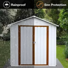 I've been searching for the perfect outdoor storage solution, and I finally found it in this shed. Its sturdy construction, made with rust and UV-resistant galvanized steel, ensures that it can withstand all weather conditions without any damage or wear. This feature alone has given me peace of mind about my tools' safety from rusting or getting damaged due to extreme weather. The spacious design is another aspect that truly stands out. It offers ample space to store large equipment like bicycles, lawnmowers - even sports gear! Everything now has its place within reach yet neatly tucked away thanks to the smart layout which accommodates even larger items easily. But what sets this shed apart is its enhanced security features. The lockable 62" high hinged doors provide secure storage while keeping small animals out – giving me peace of mind knowing my valuable items are safe from theft and wildlife! In addition to being functional though, let’s talk aesthetics - because who says practicality can’t be stylish? This isn't just an ordinary metal structure; it's a valuable addition to our garden that keeps everything neat and tidy while adding aesthetic value with its sleek design. Assembling this unit was surprisingly straightforward - clear instructions were provided which made things simpler than expected! Plus, being waterproof ensures your stored items remain dry no matter what mother nature throws at them. To sum up, if you’re looking for something more than just a storage option but rather an enhancement for your lifestyle providing decluttering solutions along with protection against elements & theft then look no further than this fantastic outdoor storage shed!