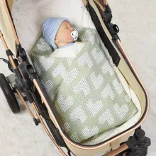 Crafted from high-quality materials, this knitted blanket is super soft to the touch, providing a gentle and comforting feel against your newborn’s delicate skin. The breathable fabric ensures that your baby stays warm without overheating, making it suitable for use all year round. Whether it’s a chilly evening or a warm afternoon, this blanket is designed to provide the perfect amount of coziness.