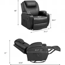 Our Swivel Rocker Recliner with Massage and Heating Functions is not just a piece of furniture, but a gateway to enhancing your daily relaxation. Its sleek design, combined with cutting-edge features, offers a sanctuary where you can rejuvenate your body and mind. Choose comfort. Choose style. Choose our recliner.