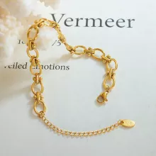 Make a confident statement with this thick oval chain bangle bracelet, designed to elevate your everyday look with effortless sophistication. Crafted from high-quality stainless steel and finished with a rich 18K gold plating, this bracelet blends modern fashion with timeless appeal. The bold oval links create a luxurious presence on the wrist, while the smooth, polished finish keeps it refined and wearable. Whether you’re dressing up for a night out or adding polish to a casual outfit, this bracelet fits seamlessly into your style.