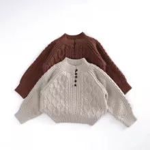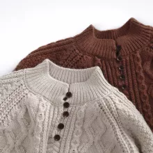 Crafted from breathable, high-quality cotton, it keeps your child toasty without overheating. The cable knit texture adds a charming, retro-inspired touch, while the stretchy fit ensures easy movement during active play. The mock neck with button detail not only adds style but also offers extra warmth and easy wearability. Plus, the slightly oversized chest design makes it perfect for layering over t-shirts or under jackets.