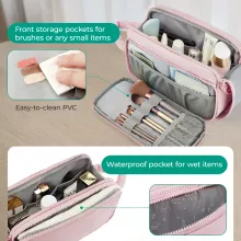 One of the standout features is the waterproof rear compartment. Made from durable PVC material, it safely stores wet or damp items like towels, toothbrushes, or skincare tools. This smart separation keeps the rest of your belongings clean and dry, making the bag ideal as both a makeup organizer and a toiletry bag.