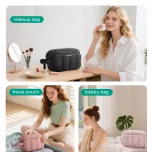 Stay organized, stress-free, and stylish wherever you go. This travel makeup organizer is designed to keep all your beauty and toiletry essentials perfectly in place. With a smart interior layout and a soft, puffy exterior, it combines function and comfort in one must-have travel accessory. Whether you’re packing for a weekend getaway, a long vacation, or simply organizing your daily essentials at home, this bag makes everything easier and more enjoyable.