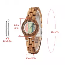 Made from 100% natural zebrawood, this wristwatch is not only a fashion statement but also a testament to high-quality craftsmanship. The petite round dial measures approximately 2.8 cm in diameter, offering a beautiful balance of simplicity and sophistication. The case thickness of about 1.0 cm enhances its delicate charm, while the glass mirror guarantees clarity and protection, ensuring your watch remains stunning and functional for years to come.
