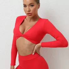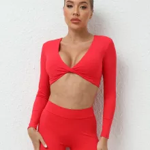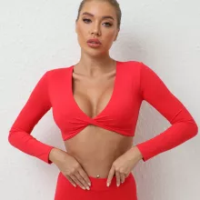 Featuring a flattering deep V twist front, this crop top adds a touch of bold style while naturally enhancing your shape. The built-in padding offers light support and coverage, making it ideal for yoga, fitness training, running, climbing, or simply elevating your everyday athleisure look. With full-length sleeves and a sleek waist-defining design, it creates a sculpted silhouette that moves effortlessly with you.