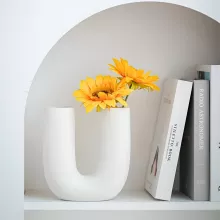 This vase is designed with simplicity and functionality in mind. Made from high-quality ceramic, it features a smooth matte finish that feels refined yet understated. Sized for tabletops, it provides a balanced presence without overwhelming your décor. The unique U shape allows for creative floral arrangements, giving your space a stylish, curated look.