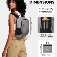This small backpack unfolds to a roomy size of 16.5 x 10 x 6 inches and folds down neatly into its own built-in pouch, shrinking to about 8.5 x 7.5 inches. Weighing only 0.59 lb, it easily fits inside luggage, carry-ons, or even a larger handbag. With a 15-liter capacity, it holds your daily essentials without feeling bulky or overstuffed.