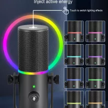 This microphone is built for effortless use. With one-touch noise reduction, gain adjustment, and a quick mute option, you stay in control of your sound at all times. The integrated RGB lighting adds an exciting visual touch, complete with multiple effects that can be switched with a tap. A real-time 3.5mm monitoring jack lets you hear yourself without delay, ensuring perfect audio levels on the first try. The included metal desktop stand allows flexible angle adjustment, and its compatibility with standard 3/8-inch mounts gives you the freedom to switch setups easily.