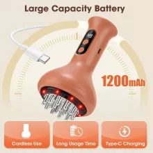 This cordless massager is engineered with innovative technology to deliver a personalized wellness experience. With 9 adjustable vibration modes and 9 temperature levels for hot compress therapy, you can tailor your session to your comfort level. The 18 rounded massage heads work harmoniously to target tension in your back, abdomen, shoulders, legs, and even scalp—melting away stiffness and promoting better lymphatic flow. The built-in 1200mAh rechargeable battery ensures long-lasting, cordless use, and the LED display keeps settings visible and easy to control for users of all ages.