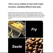 Our Air Fryer and Smart Baking Oven stands out with its multi-functionality. The oil-free cooking method not only lets you indulge in your favorite fried foods guilt-free but also keeps your meals healthy and nutritious. The advanced heating technology ensures your food is cooked to perfection, retaining its natural flavors and textures. Plus, the spacious 8L capacity means you can cook for the whole family in one go.