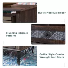 Transform your living room into a haven of rustic elegance with our 48″ Boho Coffee Table. Crafted with meticulous attention to detail, this stunning piece combines the allure of medieval design with the free-spirited essence of bohemian style. Featuring ornate detailing and gorgeous scrollwork wrought, this coffee table is more than just furniture—it’s a statement piece that adds character and warmth to any space.