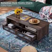 Well, let me tell ya, stumbling upon this table was like finding a hidden treasure! It's got that old-school vibe going on, a sprinkle of vintage charm that just fits right into my living room. You know when you find something and it just feels like it belongs? That's exactly how I felt with this table. But hey, don't think for a second that the appeal is all about looks. Nah mate! This bad boy comes with sliding drawers too. They're not just any ordinary though - they are super practical. I mean seriously handy! We're talking major organization game changer here. All those pesky little items lying around? Remote controls, magazines or whatever else you've got cluttering up your space - bam! Now they have their own neat little home in these drawers. And trust me when I say this: once you get used to having such organized surroundings, there's no turning back. It’s like someone waved a magic wand over your mess and made it disappear – poof! So yeah... if anyone out there is looking to jazz up their living room while keeping things tidy at the same time (and who isn’t?), then look no further than our friend here – the charmingly vintage yet oh-so-practical table. I'm telling ya folks; give this product a shot and prepare to be wowed by its blend of style and functionality. Don’t miss out on adding an amazing piece of furniture to your collection which will surely become one of your favorites in no time flat.