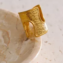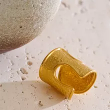 This gold tone open ring is designed for those who love effortless elegance with a bold, modern twist. Inspired by classic old-money aesthetics and updated with a contemporary geometric form, this ring brings refined confidence to any look. The hammered texture catches the light beautifully, creating depth and character that feels both artistic and luxurious. Its open, hollow design keeps it lightweight and comfortable, making it easy to wear all day without feeling heavy on your finger.