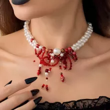 Turn heads with this breathtaking vintage-inspired choker necklace. Featuring a striking red crystal blood drop pendant paired with imitation pearl details, this piece blends gothic charm with timeless elegance. Designed for those who dare to be bold, it is the perfect statement accessory for celebrations parties, gothic events, or nights when you want to showcase your unique style.