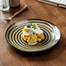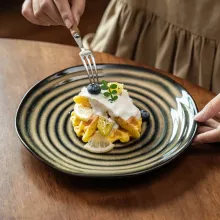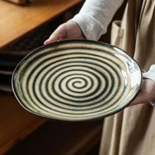 Bring classic elegance into your everyday meals with this vintage spiral pattern ceramic plate. Inspired by European and Western tableware styles, this round plate blends old-world charm with modern simplicity. The subtle spiral design and striped pattern add depth and character, making every dish look thoughtfully prepared. Whether you are serving a hearty steak, fresh fruit, or a sweet dessert, this plate instantly elevates the presentation.