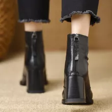 These ankle boots are crafted to balance both comfort and style. The thick heel provides stability, making them ideal for all-day wear, while the smooth back zipper ensures easy slip-on convenience. Their modern square toe design adds a bold and elegant touch that pairs seamlessly with dresses, skirts, or jeans.