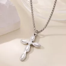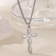 Discover the power of faith and fashion combined in this striking cross pendant necklace. Whether for yourself or as a gift, this timeless piece of jewelry will be a cherished accessory in any collection. Order yours today and wear your faith in style!