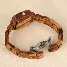 This elegant wooden wristwatch is perfect for various occasions, whether you’re dressing up for a formal event, heading to the office, or enjoying a casual day out. Its versatility means it can seamlessly blend into your daily attire, ensuring you always look sophisticated and put together. The push-button hidden clasp provides a secure fit while maintaining the sleek look of the watch.