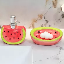Add a splash of fun and freshness to your bathroom or kitchen with this delightful watermelon-shaped lotion bottle and matching soap dish. Crafted from high-quality ceramic, this set is both practical and eye-catching, turning everyday routines into little moments of joy. Its vibrant design brings a pop of color to any sink space while keeping your handwash essentials neatly organized.