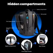 Designed with multiple compartments, this backpack makes organization effortless. The padded laptop compartment securely fits laptops up to 17.3 inches and also holds an 11-inch tablet. The main compartment is roomy enough for clothes and essentials for 2–3 days, while interior pockets keep your phone, keys, and accessories neatly stored. A hidden anti-theft pocket adds extra peace of mind during travel.