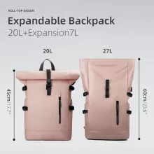 With a 20-liter main compartment that expands to 27 liters when unrolled, this backpack offers generous storage for your clothes, books, and everyday essentials. It comfortably fits a 15.6-inch laptop and a 12.9-inch tablet, making it ideal for professionals, students, and travelers alike. The roll-top closure with a secure buckle allows you to easily adjust the space according to your needs—perfect for those extra items on your way home.