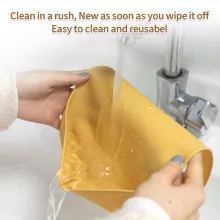 Cleanup takes seconds. The waterproof surface wipes clean instantly, even after messy meals. It’s also heat-resistant up to about 392°F, so it won’t deform with hot foods or warm water washing. Flexible and rollable, it fits easily into diaper bags without taking up space.