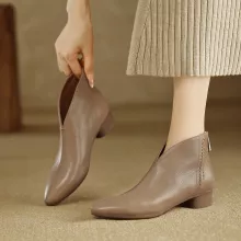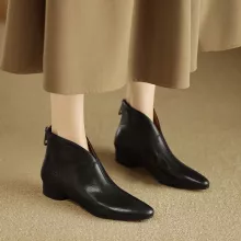 Made from 100% genuine leather, both the upper and lining ensure durability, warmth, and breathability. The soft latex foam insole provides all-day cushioning, while the non-slip rubber outsole offers reliable traction on winter streets. Featuring a square mid-heel (approx. 1.2–2 in) and a sleek pointed toe, these ankle boots balance classic design with modern appeal. The convenient side zipper closure allows easy wear without compromising style.